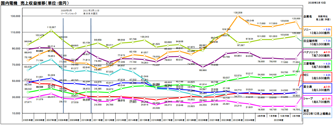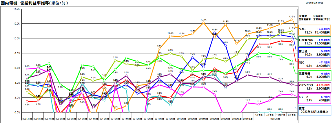 2026.02.11 2025年度第3四半期決算と通期予想:国内電機7社の概要