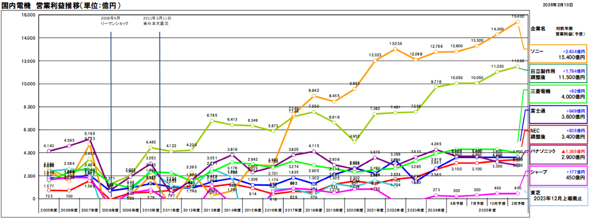 国内の主な電機各社とIT関連企業の決算を、定期的に整理していきます。