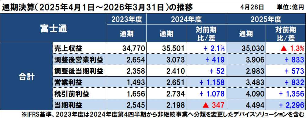 2026.04.28 2025年度通期決算と2026年度通期予想:富士通