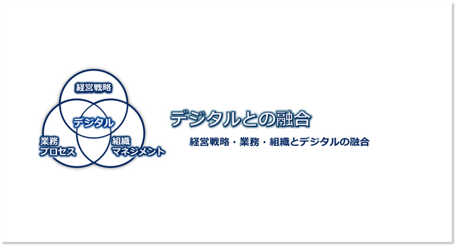 デジタル技術を戦略的に活用するためには、「経営戦略とデジタル」「業務プロセスとデジタル」「組織マネジメントとデジタル」を融合させることが必要です。