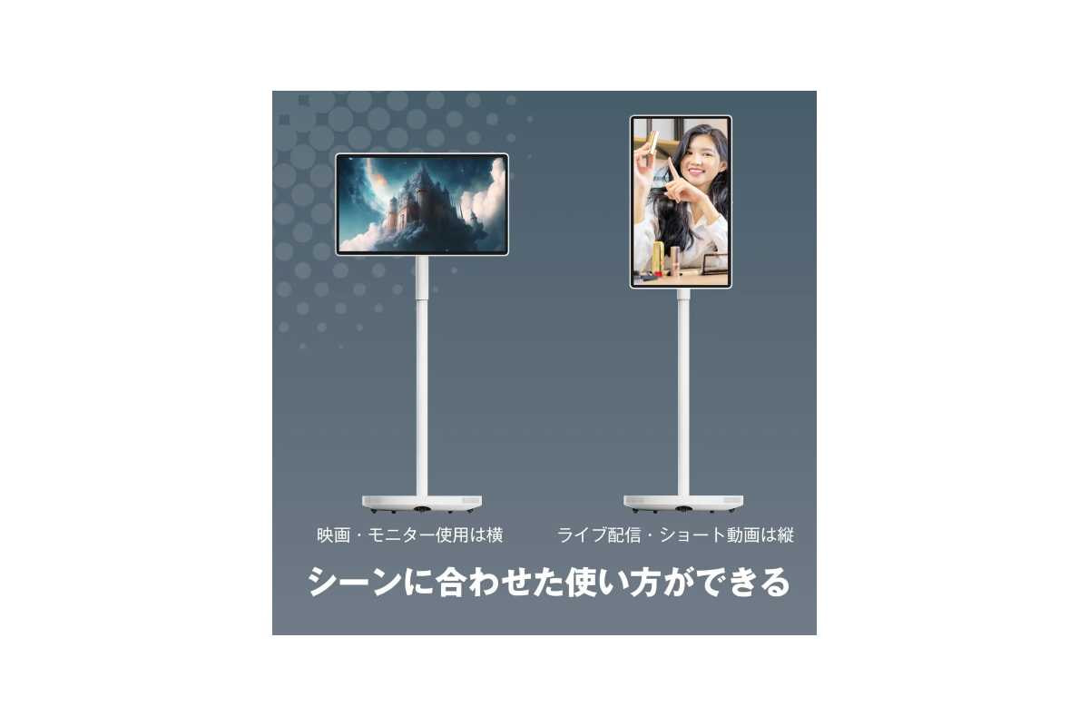 リビング・寝室、キッチン、ワークスペースなどの好きな場所に大型タブレットを移動して、SNSやゲーム、ライブ配信や動画、PCモニターやビデオ会議など、さまざまなシーンで使用できるモデルです。